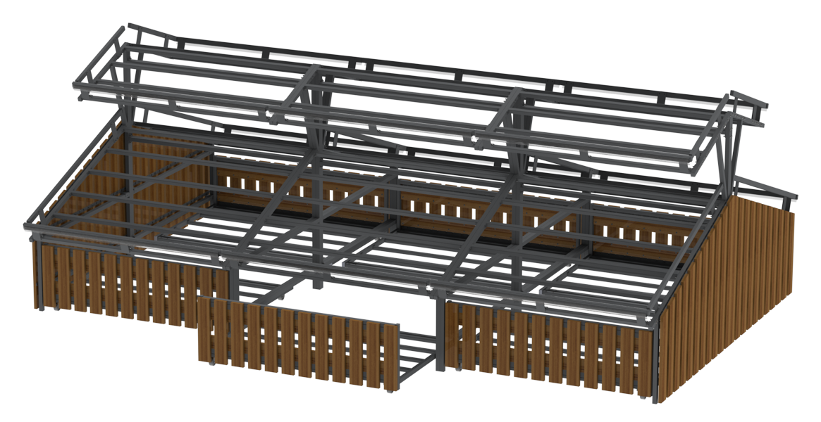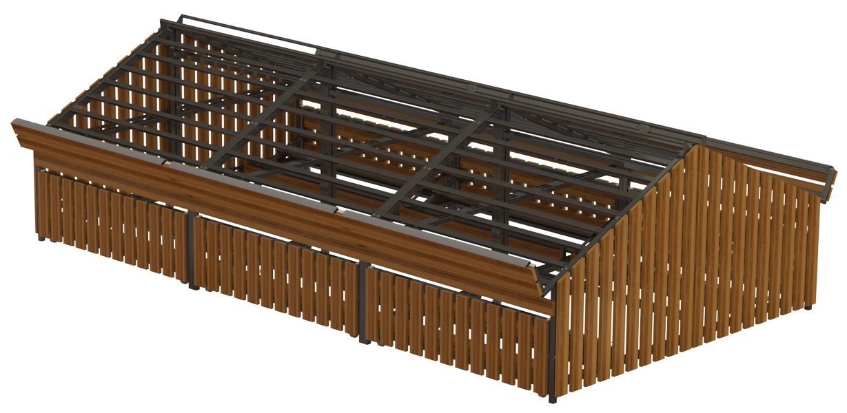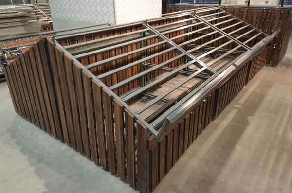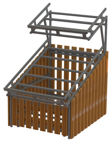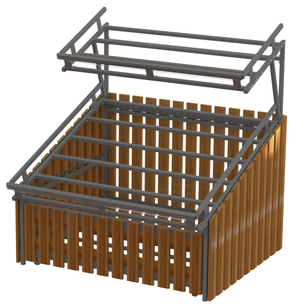 Stands for fruits and vegetables (type 5) is made of metal with wooden slats. The stand has one level of display and a lower roll-out shelf, which allows to make the shelving two-level.