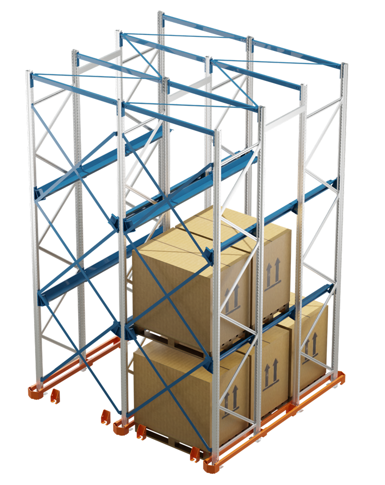 Drive-in racks (stuffed) are the most capacious of all types of pallet systems and are designed to store a homogeneous type of goods.