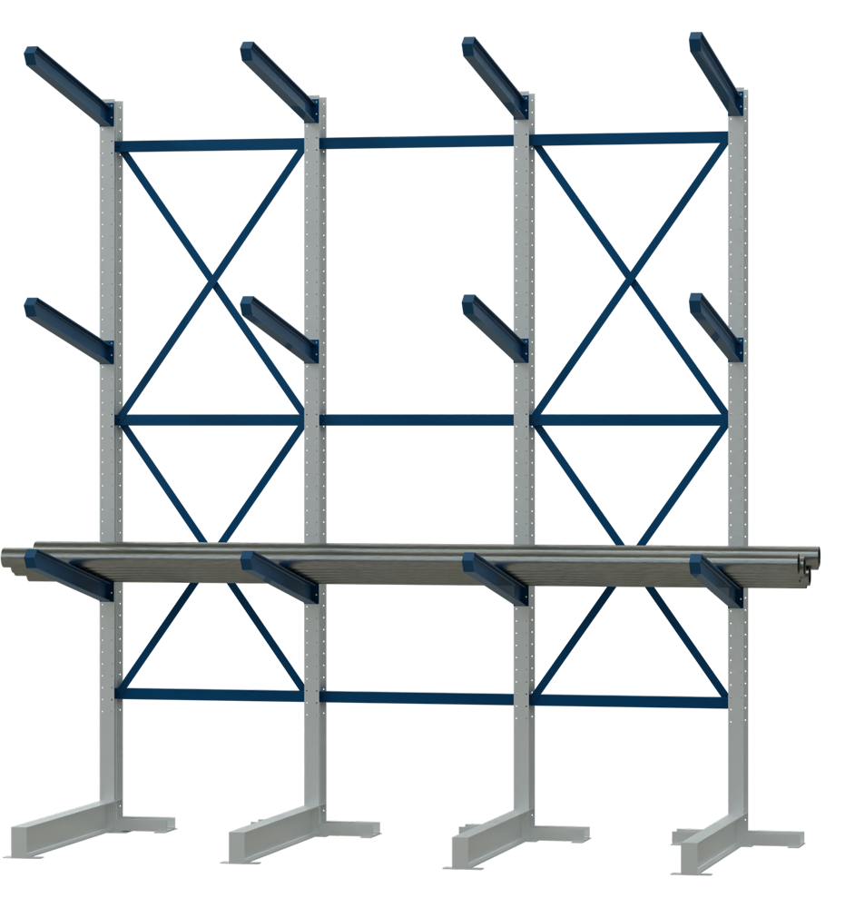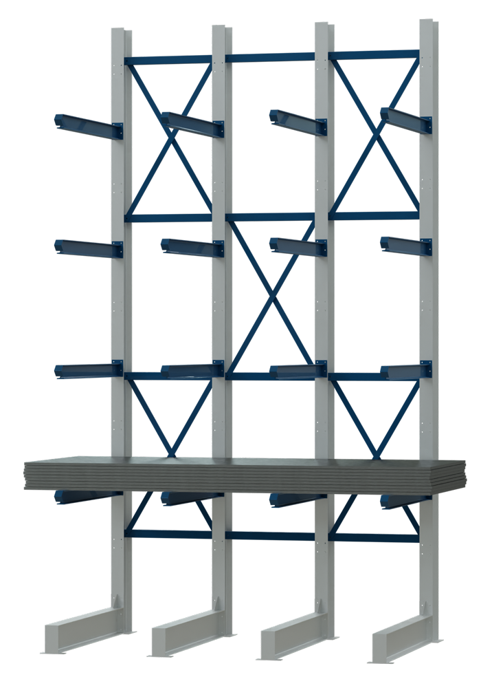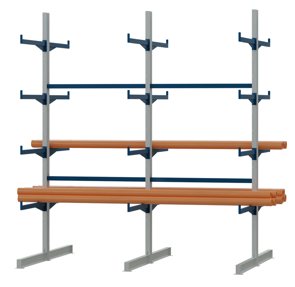 Cantilever racks are made for long goods such as pipes or profiles, for sheet materials such as wood panels and iron sheets, and for oversized goods must be made individually and at the same time adapted not only for the product, but also for the available storage space.