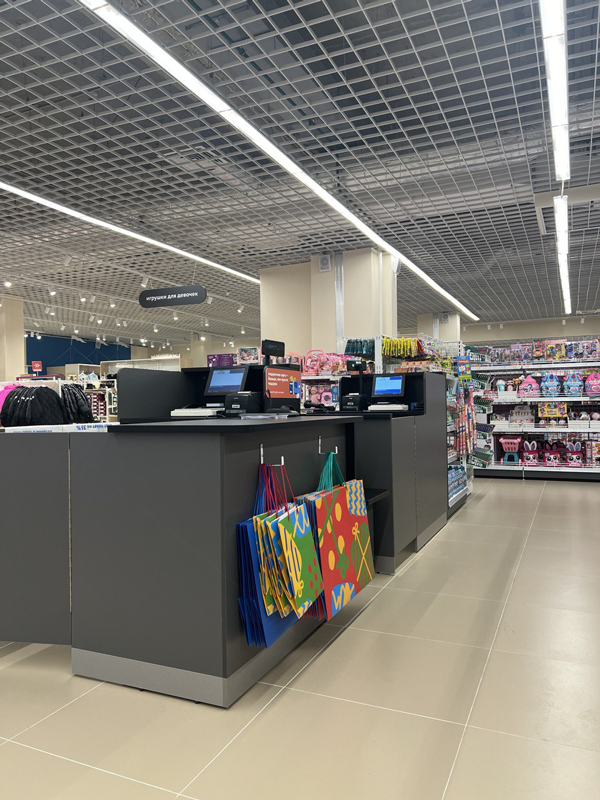 Наш конструкторский отдел тщательно проработал каждую деталь в соответствии с каталогом клиента. В магазине присутствует как металлическое, так и оборудование из ДСП, которое было изготовлено нашими. Благодаря слаженной совместной работе нам удалось достичь желаемого результата и реализовать проект согласно запроса и брендбука клиента.