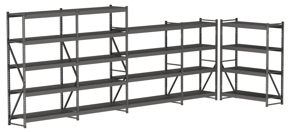 При установке стеллажей в линию они собираются по принципу одна основная секция + дополнительные, что дает значительную экономию за счет использования общих рам.